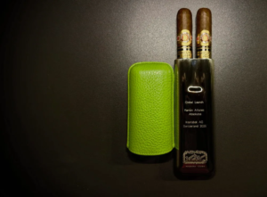 La Ed. Limitada viene presentada en una caja elegante y cuidada de 20 cigarros, combinando detalles clásicos con toques modernos. Los invitados recibieron tres tabacos y una preciosa purera de la marca St. Dupont, de acabado metálico con los detalles de la velada grabados, junto con la pieza de cuero en verde, colores característicos de la marca.